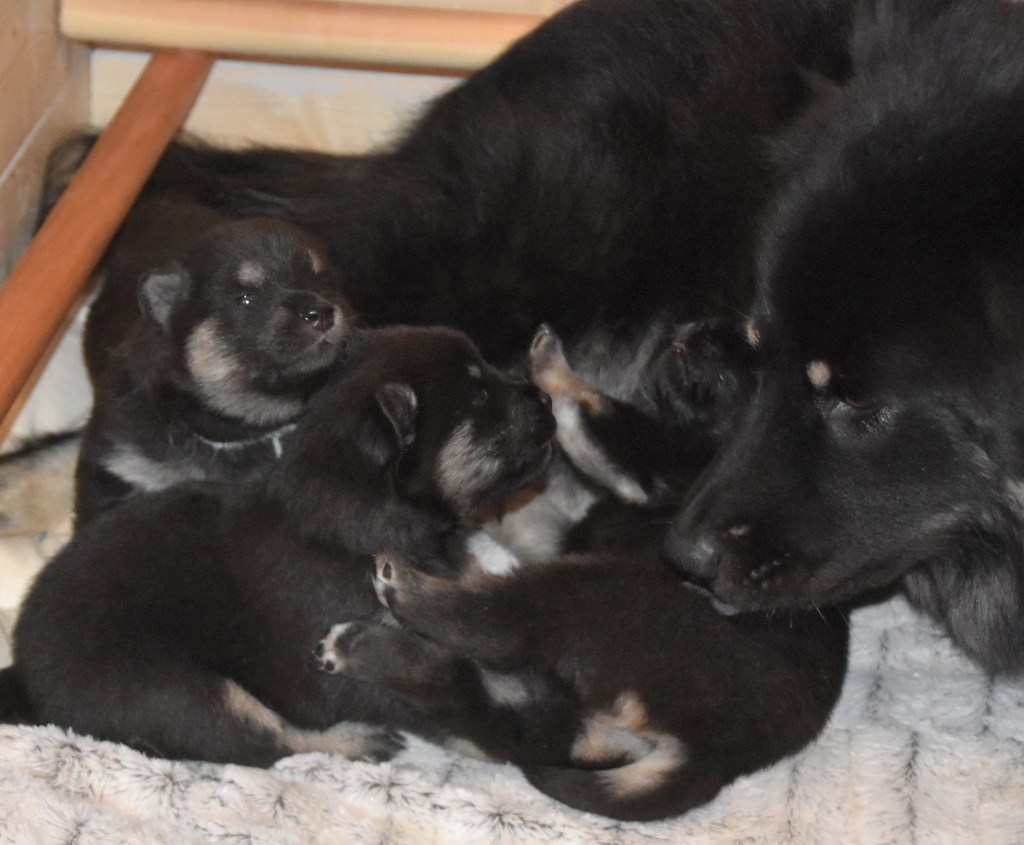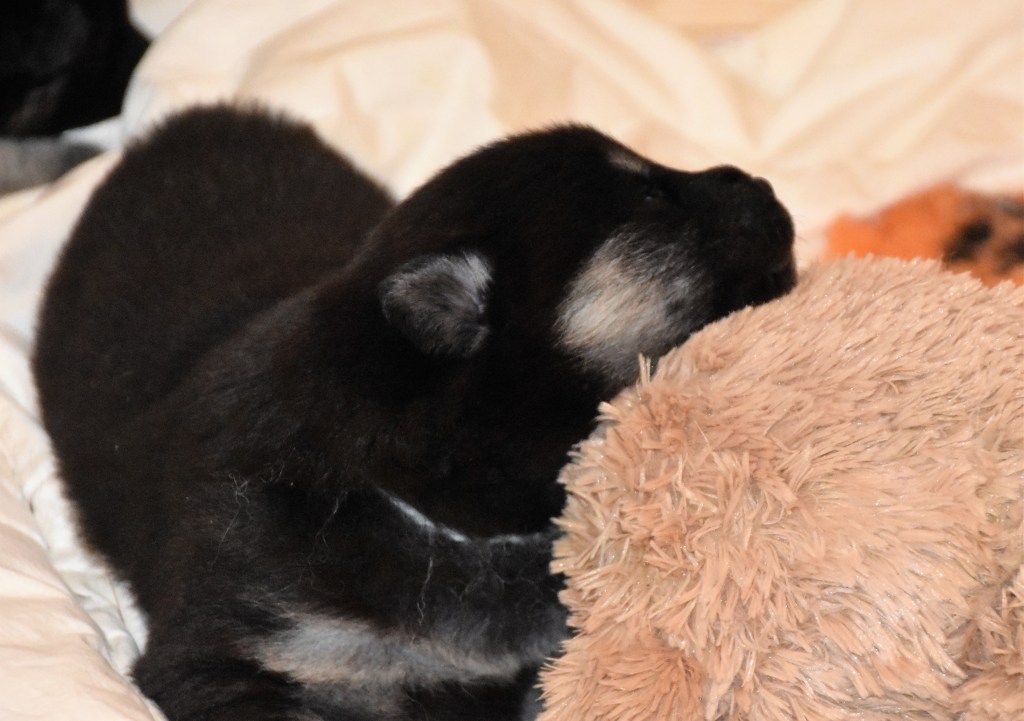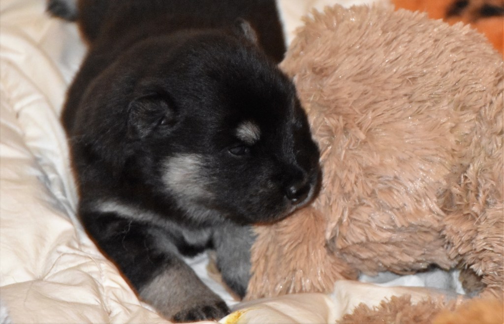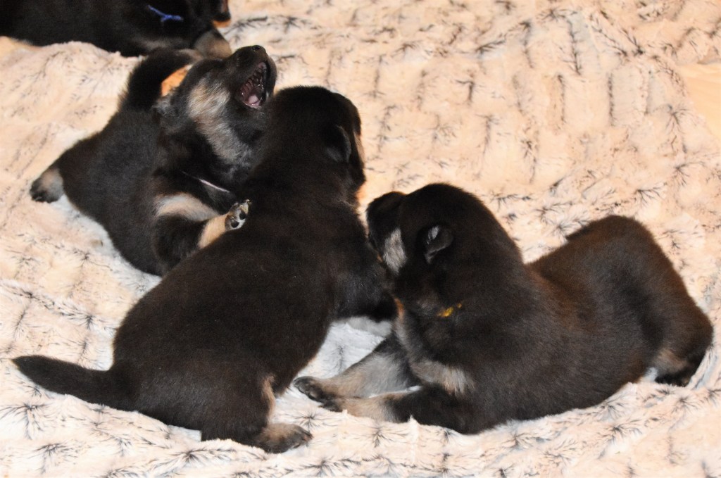 På fredag är de ju redan 3 veckor och det innebär att de nu så smått får börja ta emot besök av blivande valpköpare men vi har faktiskt plats för ytterligare en valpköpare till en hane som också söker sitt alldeles egna hem och det kanske är just denna godingen? ❤