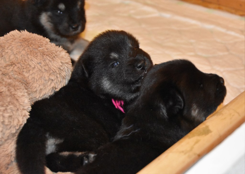 Gänget är vakna betydligt mer nu och leker med varandra en del och små tänder har också börjat dyka upp. Inte så vassa än men det kommer 😉 . Och något de sköter med glans redan nu är att de går på tidning/kisskydd när nöden så kräver. Otroligt duktigt tycker jag att de redan fattat detta men så är de intelligenta små varelser givetvis, vad annars 😉 ❤