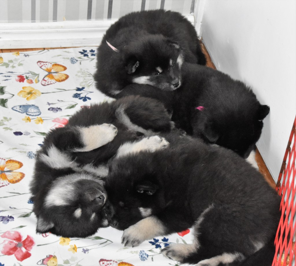 Ja jag vet, gänget var 5 veckor i fredags men även denna helgen har varit himla kul men lite körig den också, helgerna blir lätt så nuförtiden 😉 . En massa goa valpbesök har vi haft och här passar jag på att tacka igen för alla fina presenter, vi blir helt klart bortskämda ❤