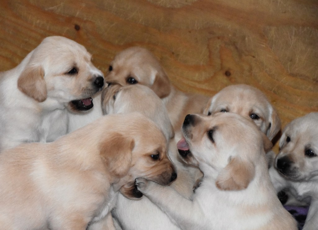 8 stycken ljuvliga labradorvalpar hos Mandylike’s kennel på 4 veckor och hur söta som helst ❤