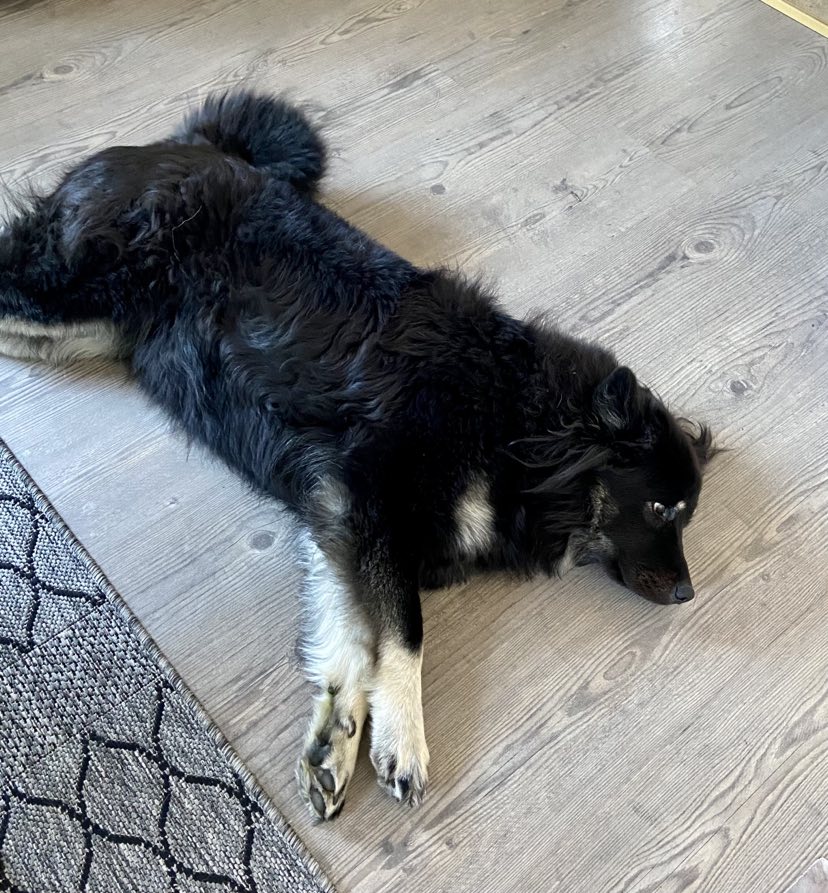 HÀr ligger hon pÄ köksgolvet och ser sÄ dÀr söt och tillfreds ut. Lugn som en filbunke, snart 3,5 Är och mamma till 5..