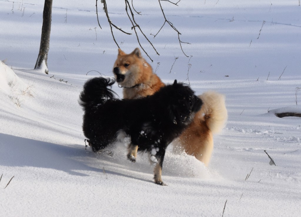 Som ni ser så var det inte direkt någon brist på snö inte hagel heller för den delen 😉 . Men när vi kom närmare skogskanten så lugnade vädrets makter ner sig lite..