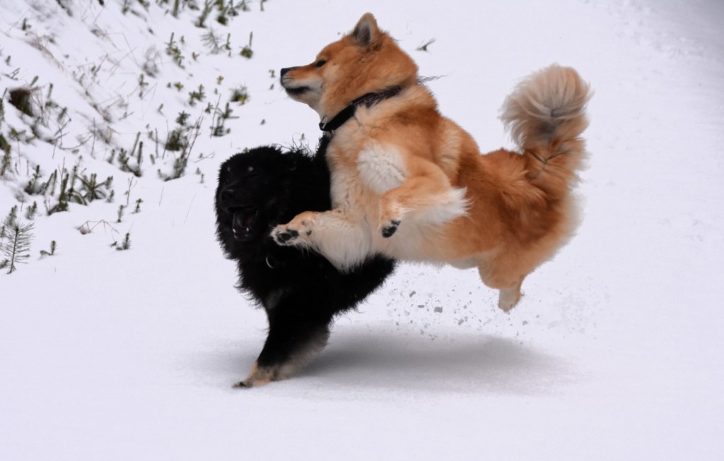 En tung blötsnö gjorde att vi tvåbenta fick jobba lite extra för att ta oss fram men det verkade inte alls bekymra våra ungdomar i flocken utan de två bustjejerna höll igång som vanligt 😉