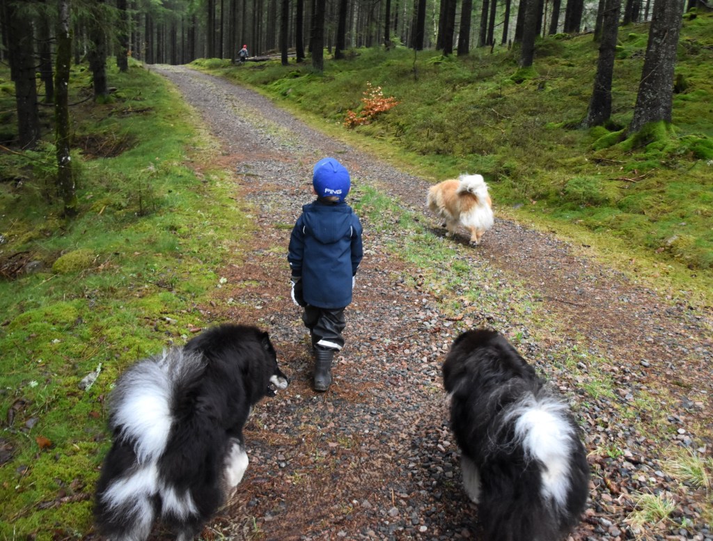 Söndag eftermiddag och huset är nu väldigt tyst efter att dottern med familj åkt hem. Med fyra grabbar i åldern 6 år och neråt så blir det givetvis livat värre! Det har bl.a. pusslats, byggts med lego, målats, spelats tv-spel men det blev även en tur till skogen med hela ligan 😉 ❤