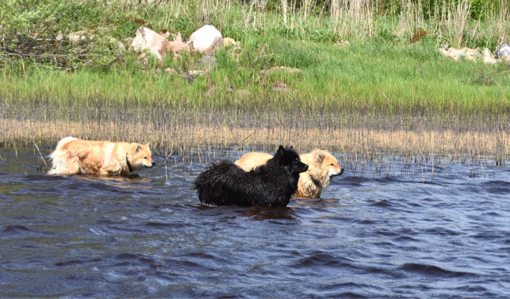 Lite smĂ„blĂ„sigt men definitivt inte kallt alls, varken i luft eller i sjön, utan helt ljuvligt faktiskt! Och dagens utflykt föll verkligen alla vĂ„ra goa fyrfotingar i smaken och det syntes đ đ
