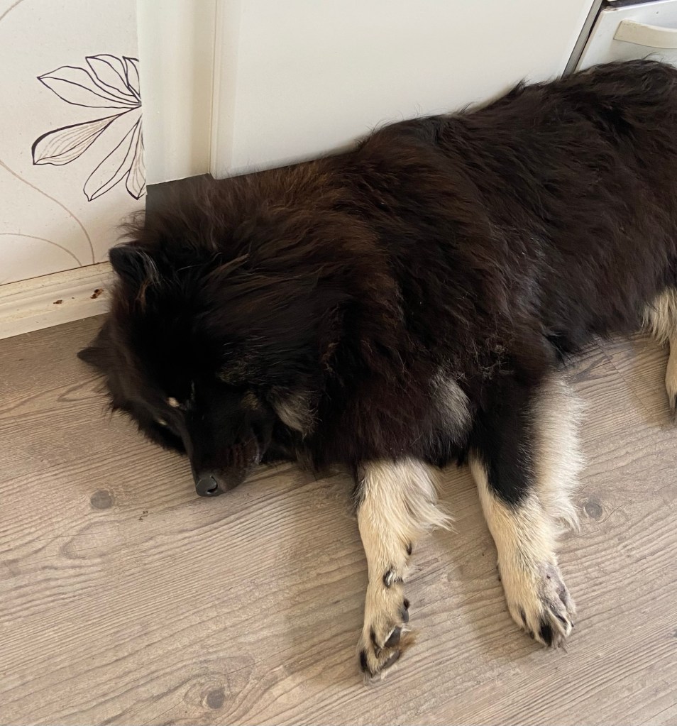 Nu väntar två veckors vila för tjejen och ett återbesök framöver för att kolla hjärta och värden. Men det tänker jag inte oro mig för nu utan bara njuta över att Malou är hemma hos oss igen och sover så gott på köksgolvet 😍