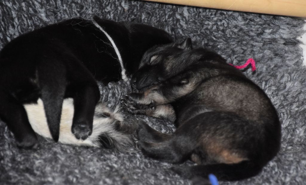 Det är inte klokt vad tiden går! Idag fyller våra bebbar 1 vecka och de mår fortsatt prima ❤ . Och med risk för att vara tjatig men ja, de fortsätter att äta och sova. Med andra ord, ”livet på en pinne” för en liten valp 😉 ❤