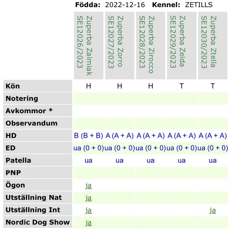 Som ni ser så är hela kullen fri på HD, ED samt patella och det värmer att ett uppfödarhjärta ska ni veta! Ligger ju mycket jobb bakom detta att planera en kull valpar och att då få möjligheten att följa upp sitt arbete är guld värt. Så ett stort TACK till alla våra fina valpköpare i Zuperba-kullen som tagit sig tiden att göra detta, ni är ju bara bäst ❤