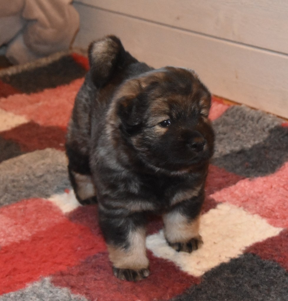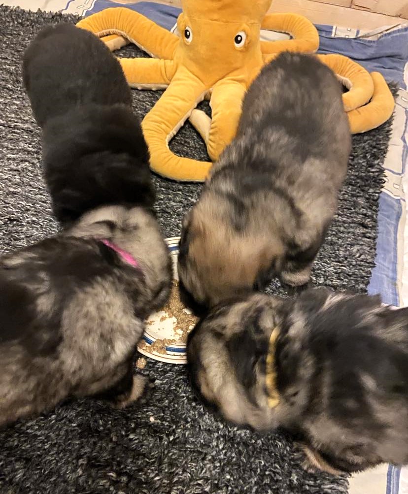 Halva tiden har nu gått, är inte klokt egentligen hur snabbt allt går! Fyra små pigga krabater som fick fira sin 4-veckors dag med en smakportion av uppblött valpfoder och det krävdes ingen övertalning överhuvudtaget för att få dem att hugga in 😉
