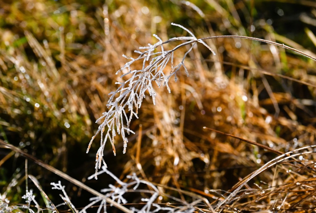Men det syntes fortfarande lite spår efter nattens frost. Vattendroppar i massor där solen kommit åt..