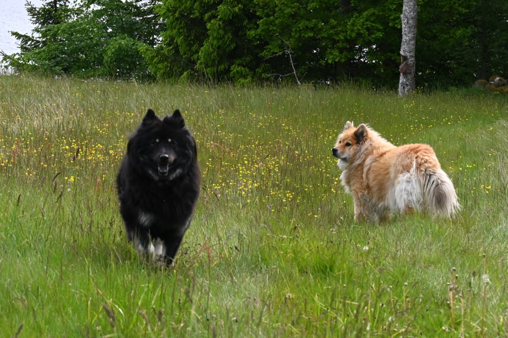 Nej det är inget snack om vem som är yngst i flocken och har mest behov av att bränna energi. Tror att de äldre tycker att Malou är rätt tröttsam emellanåt, Tindra ser ju inte direkt imponerad ut här om man nu säger så 😉