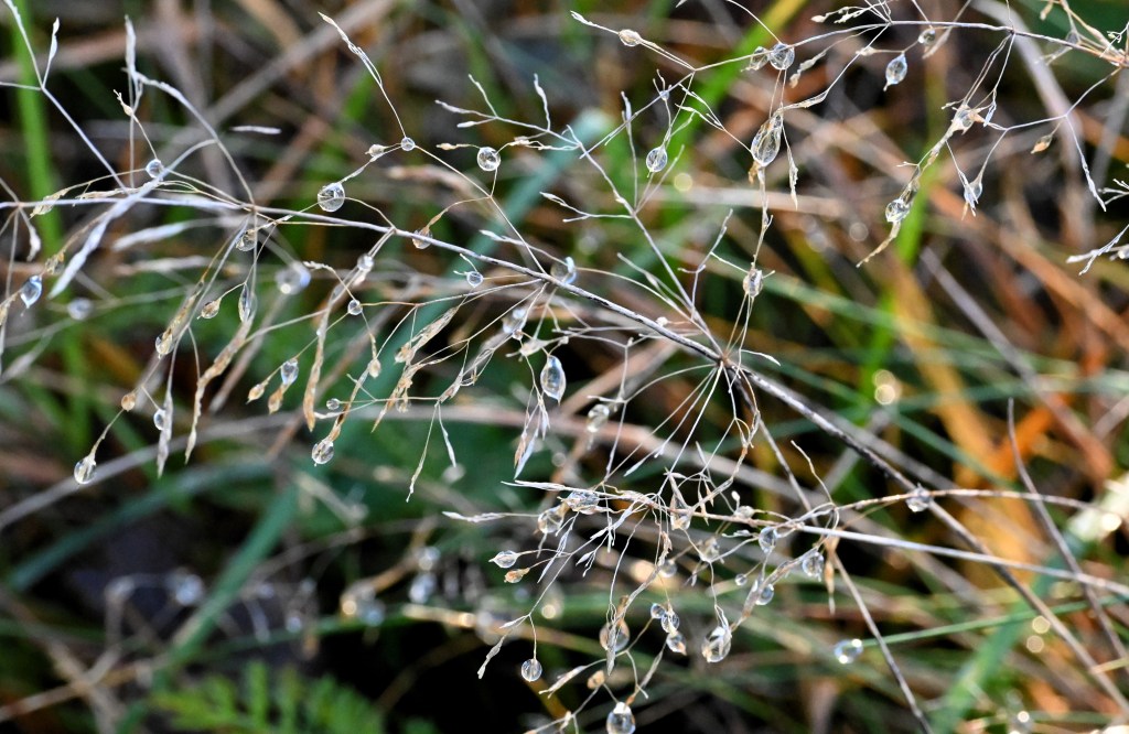 Men det finns ju något vackert i allt och dessa vattendroppar som klänger sig fast på grässtråna kan man ju inte missa att föreviga eller? 😉