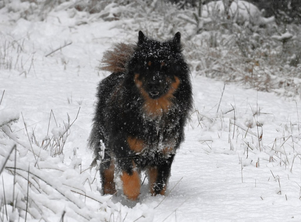 Ett perfekt eurasier-väder! Inget snack om att de alla fyra verkligen gillade all denna snön och jag håller med, ganska mysigt faktiskt och lite julkänsla fick man också 🙂