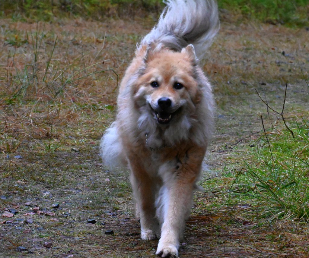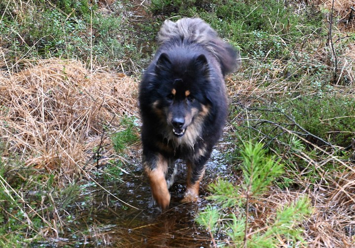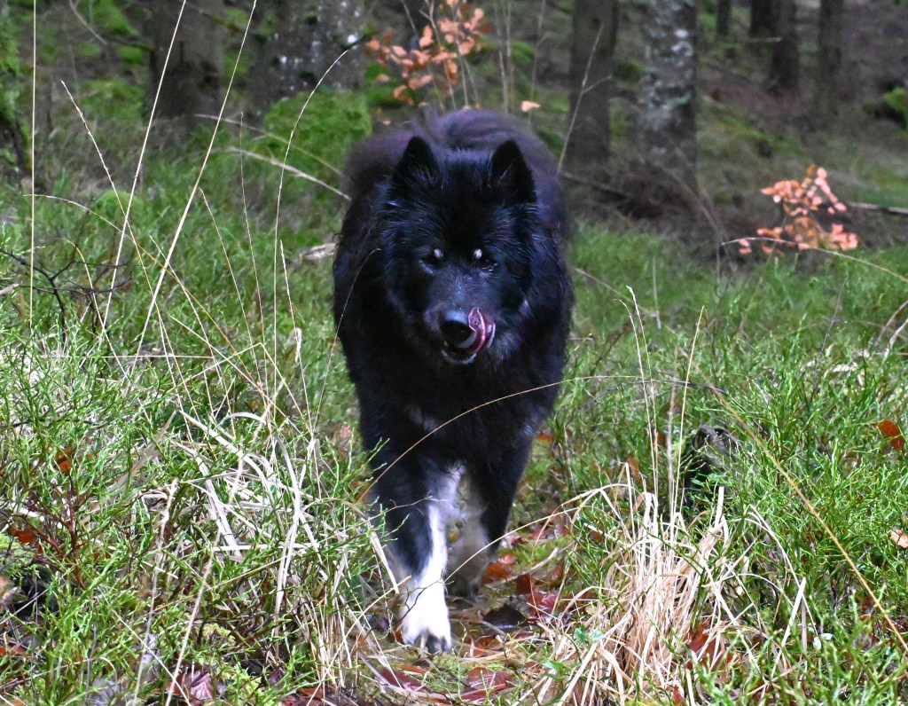 Men oavsett vĂ€der sĂ„ vill ju tjejerna ha sin dagliga lĂ„ngpromenad och idag verkade jĂ€garna ha en vilodag sĂ„ valet föll pĂ„ den blöta skogen đ